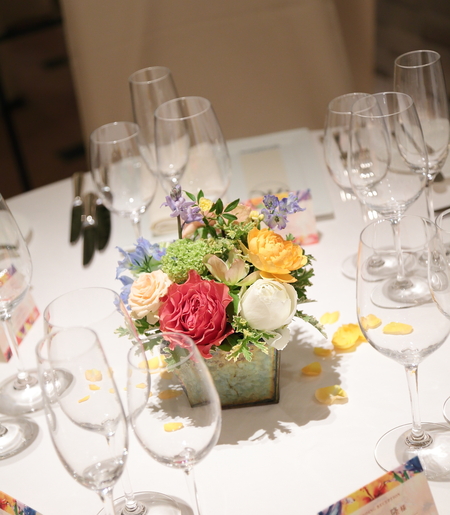 本日ひらまつレゼルヴ様へのメインテーブルの装花、
