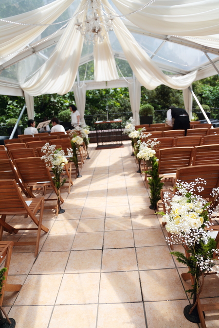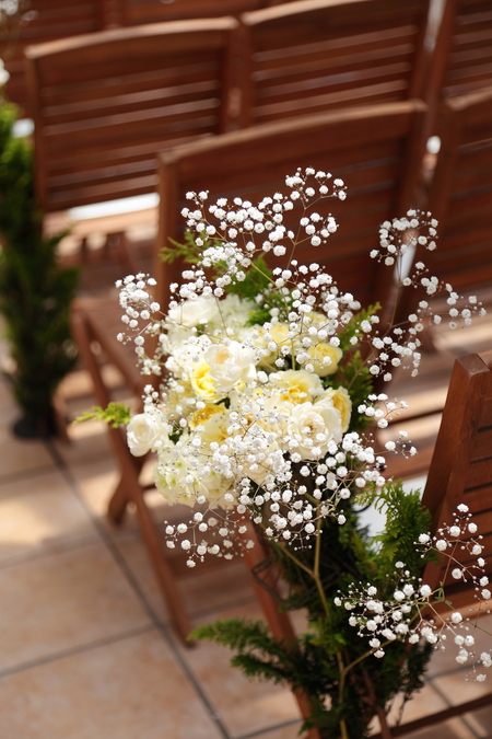 チャペルの装花もレモンイエローで、