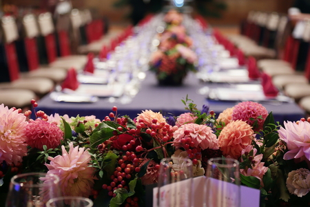 和婚の装花といえば赤やオレンジですが、