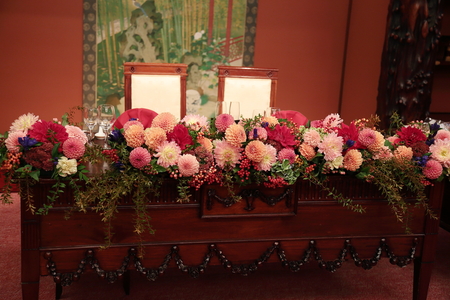 初秋、9月。目黒雅叙園鷲の間さまへの高砂装花です。
