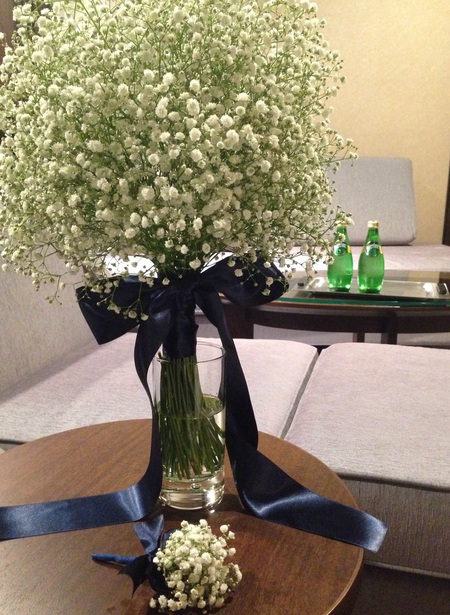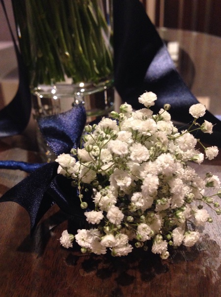 ブーケもかすみ草のみの綺麗なまんまるのブーケ。