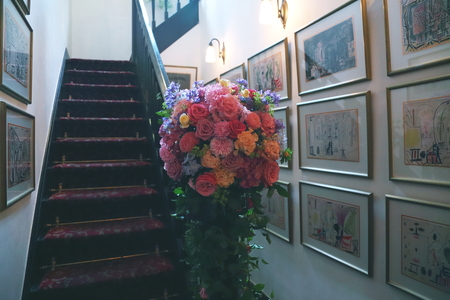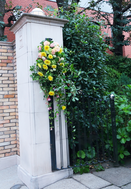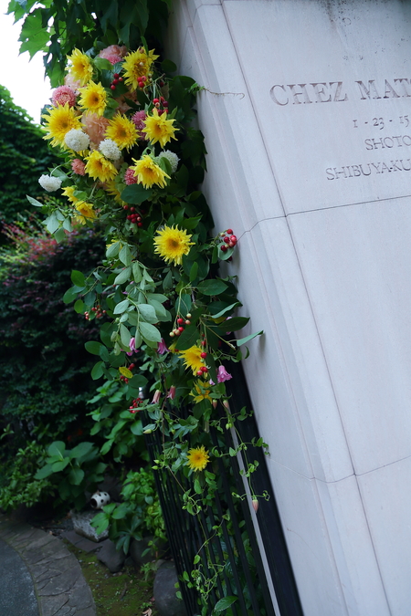 初夏、シェ松尾松濤レストラン様へのひまわりの門柱装花です。