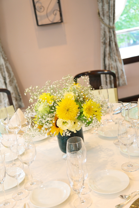 実はゲストテーブル装花は、3シェアして