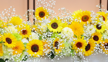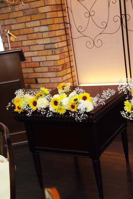 ひまわりをメインに、カスミソウをいれて。