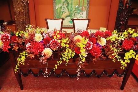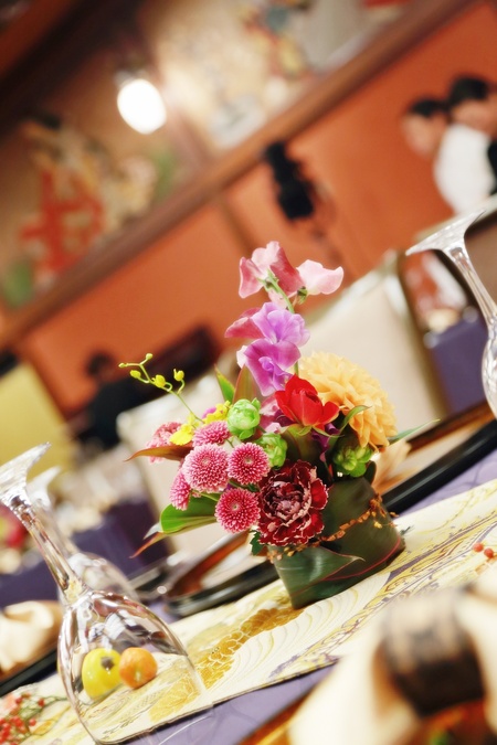 当日ひとつだけ竹の器の装花をキープしてもらって