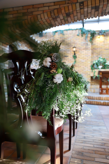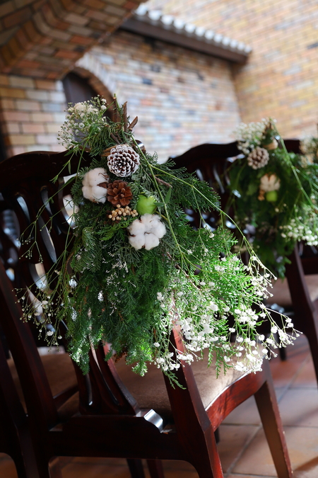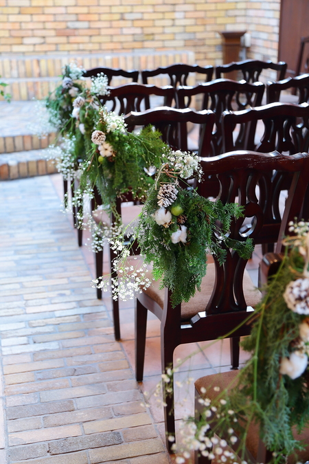 バージンロードのチェアフラワーは、