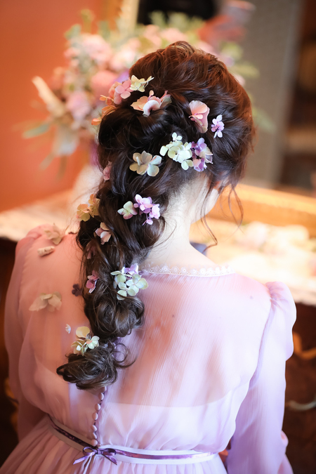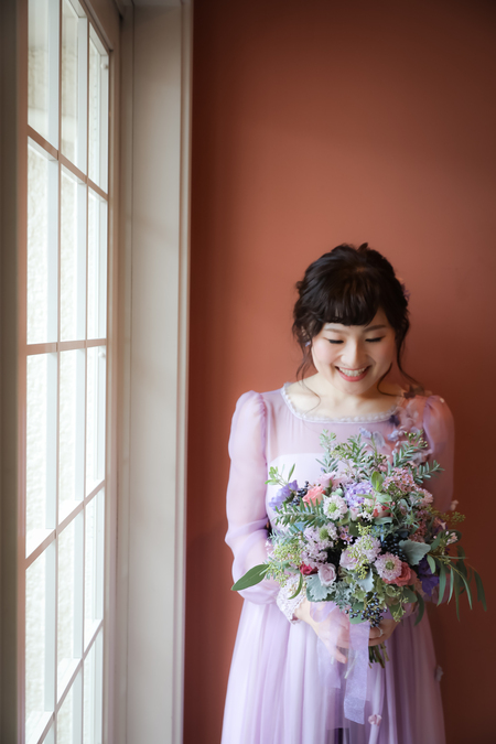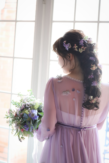 お色直しのドレスはラベンダーカラー、