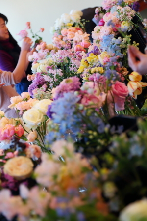 階段装飾など、普段はなかなかできない装花のレッスンです。