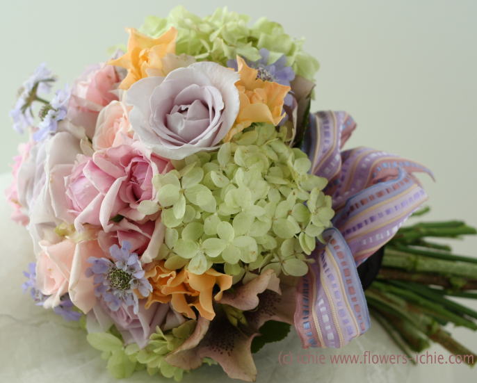 一会の場合、ナチュラルステムブーケ(茎の見える形のブーケ)に