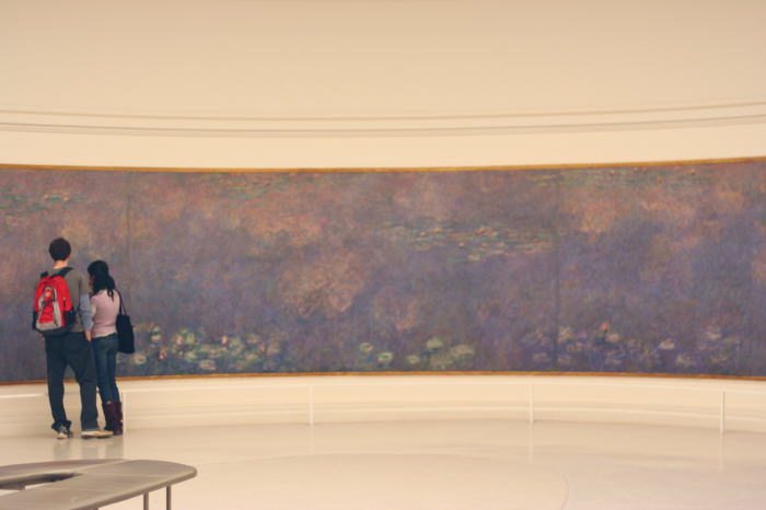 地上のモネの「睡蓮」は、壁の前に立ち目を開けると