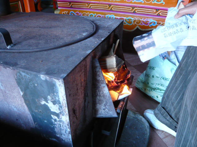 夜は冷え込むので、薪ストーブで暖を取ります。