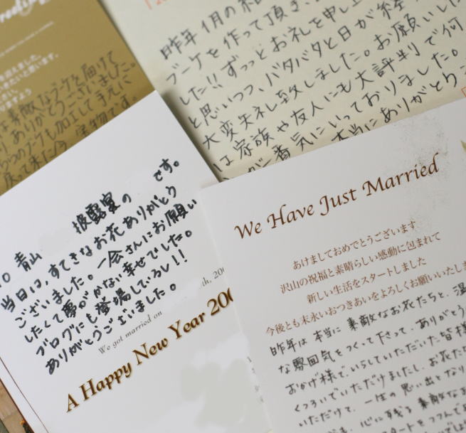 本当は、はがきの裏面、挙式当日のお写真が載っている