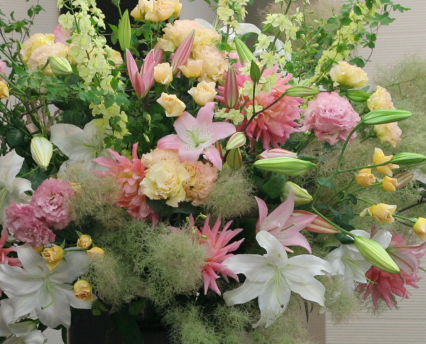 株主総会の、演壇の花です。