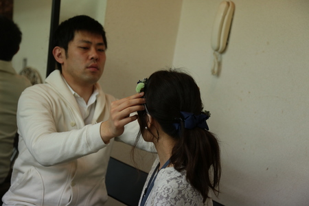ご新郎さまがご新婦さまのために花冠を作成中です!