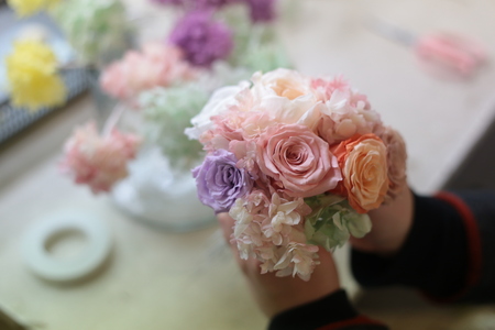 ご両親へのギフトの花や、ブーケを手作りできる一日教室です。